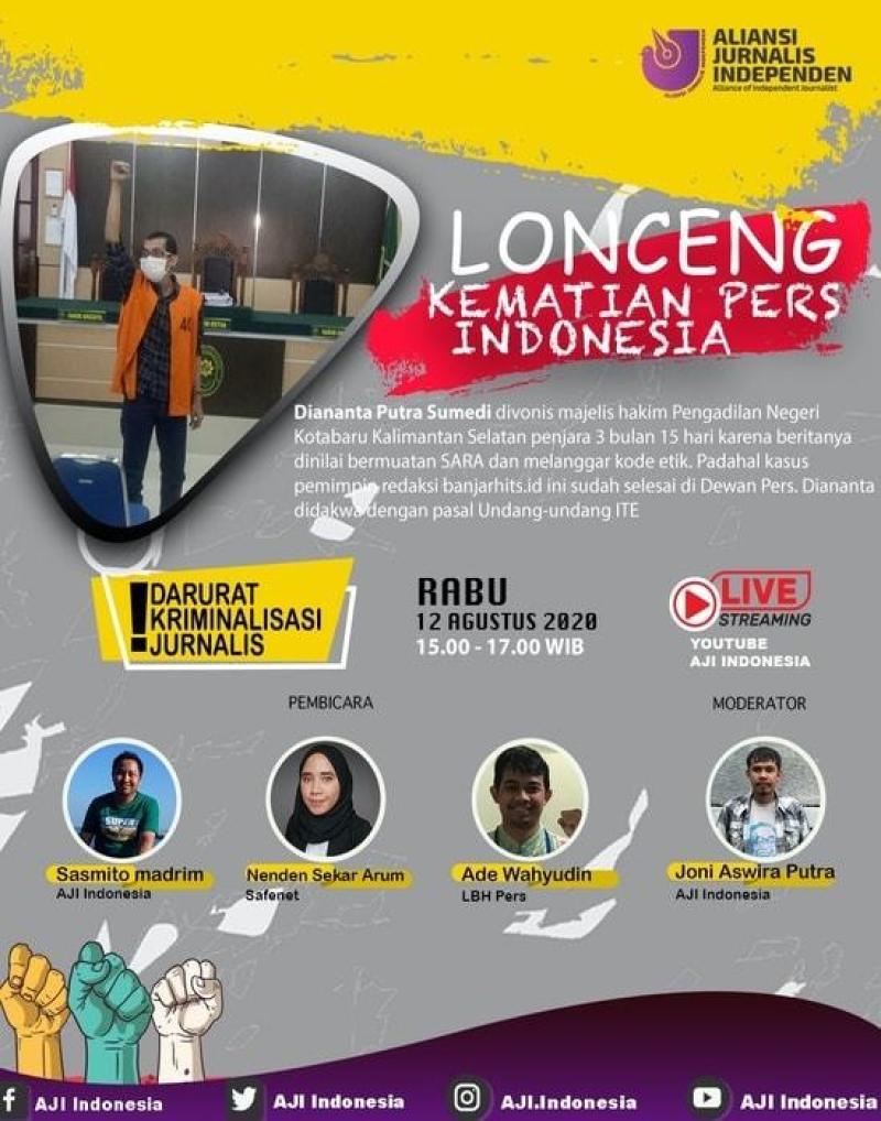 Lonceng Kematian Pers Indonesia - 12 August 2020 Dikirim oleh admin pada 12 August 2020 ShareTagLonceng KematianPers Indonesia7 kali dilihat