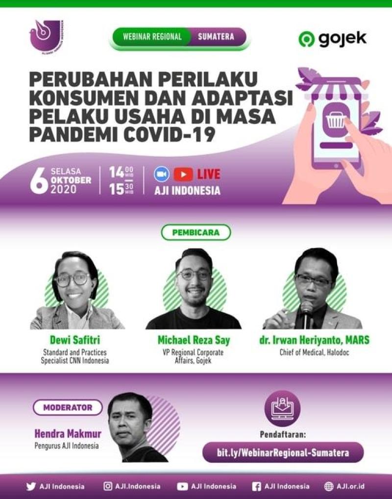 AJI Indonesia bekerjasama dengan Gojek mengadakan Serial Webinar Regional Sumatera dengan tema “Perubahan Perilaku Konsumen dan Adaptasi Pelaku Usaha di Masa Pandemi COVID-19” yang akan diselenggarakan pada :
