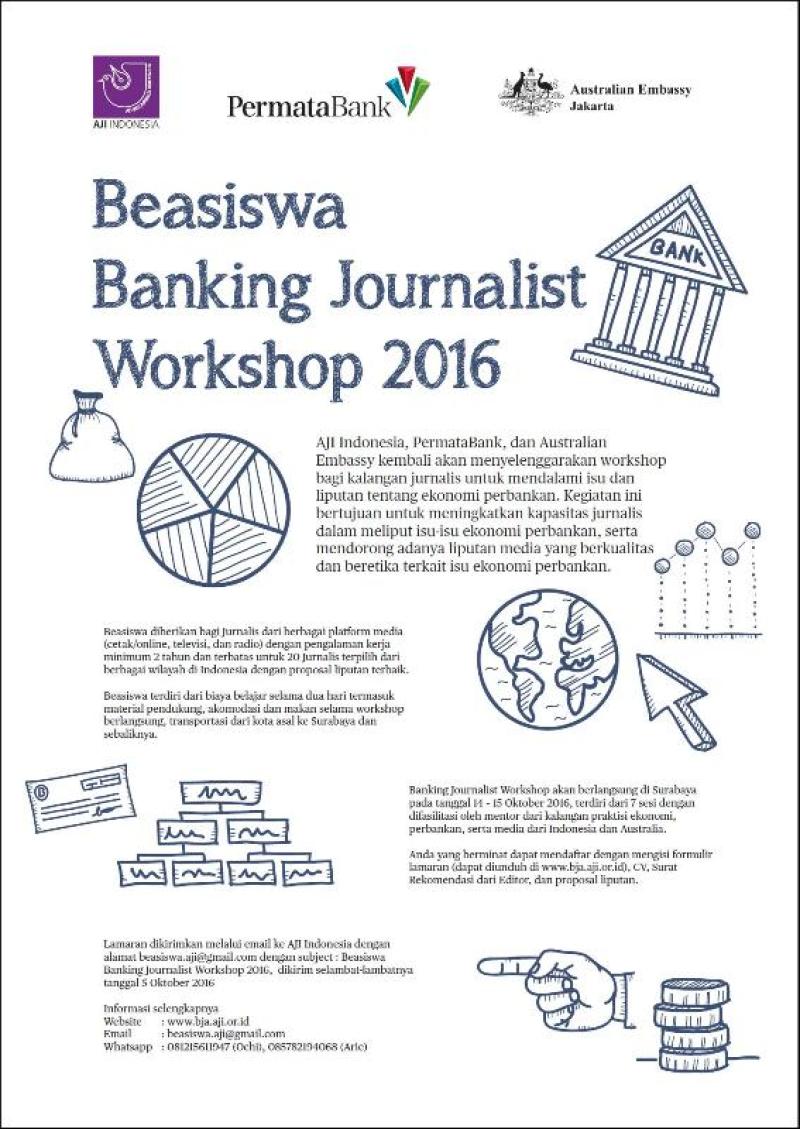 AJI Indonesia, PermataBank, dan Australian Embassy kembali akan menyelenggarakan workshop bagi kalangan jurnalis untuk mendalami isu dan liputan tentang ekonomi perbankan. Kegiatan ini bertujuan untuk meningkatkan kapasitas jurnalis dalam meliput isu-isu ekonomi perbankan, serta mendorong adanya liputan media yang berkualitas dan beretika terkait isu ekonomi perbankan.