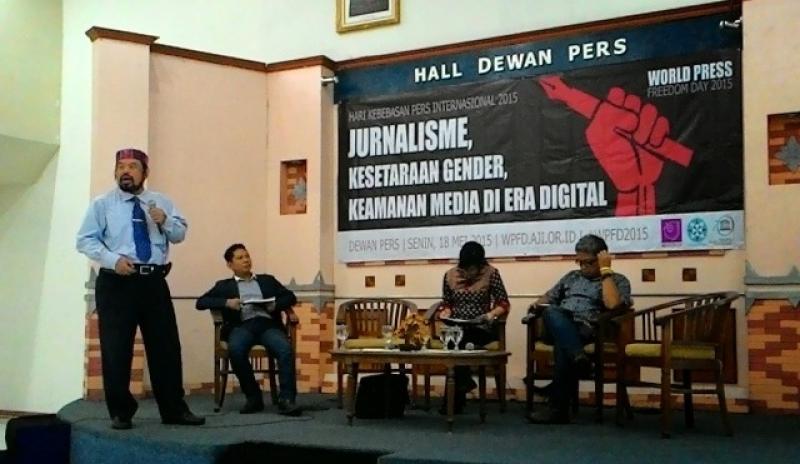Diskusi berlangsung di Hall Dewan Pers, dengan menghadirkan pembicara Direktur Jenderal Dirjen Informasi dan Komunikasi Publik Kominfo, Freddy H Tulung, Anggota Dewan Pers Ninok Laksono, Mariana Amiruddin dari Komnas Perempuan, Donny BU dari ICT Watch, Uni Lubis dari ATVSI, Harry Surjadi Freelancer Journalist dan Endy M. Bayuni The Jakarta Post.