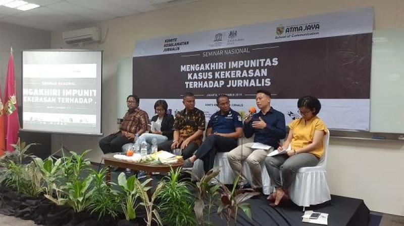 “Penegakan hukum tanpa pandang bulu bagi pelaku menjadi obat paling mujarab untuk menghentikan kekerasan terhadap jurnalis,” kata Koordinator Komite Keselamatan Jurnalis Sasmito Madrim di sela-sela Seminar memperingati Hari Internasional Anti- Impunitas terhadap Kasus Kekerasan kepada Jurnalis (The International Day to End Impunity for Crimes Against Journalist), di Kampus Atma Jaya, Jakarta, Sabtu, (02/11/2019)
