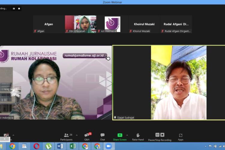 Purwokerto - Aliansi Jurnalis Independen (AJI) Kota Purwokerto menggelar webinar bertajuk "Tantangan Profesionalisme dan Kesejahteraan Jurnalis di Era Digital" pada Sabtu, 14 Mei 2022. Webinar