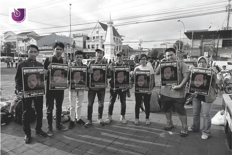 Yogyakarta -- Koalisi Masyarakat untuk Udin (K@MU) dan Aliansi Jurnalis Independen (AJI) Yogyakarta menggelar aksi kampanye digital menolak impunitas pembunuhan wartawan Harian Bernas, Fuad Muhammad