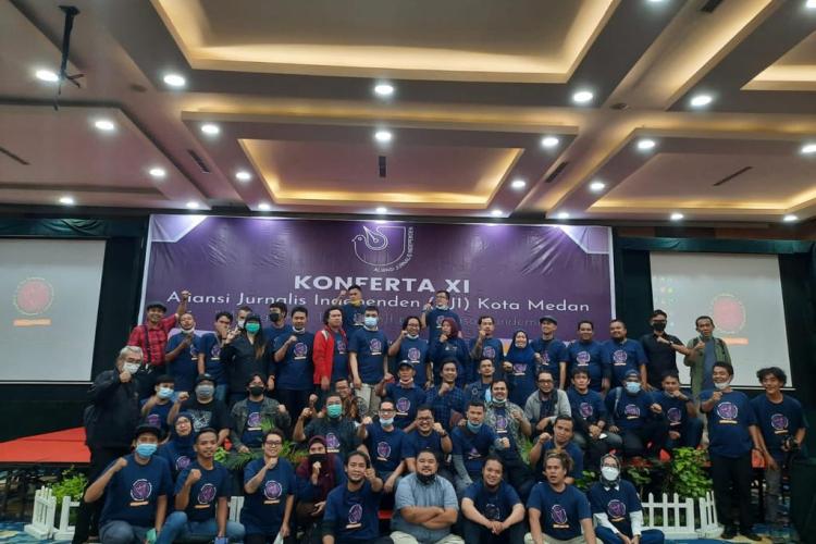 Konferensi Kota (Konferta) Aliansi Jurnalis Independen (AJI) Medan yang digelar di Hotel Grand Inna Medan, Sabtu (27/12/2021) melahirkan kepemimpinan baru AJI Medan periode 2021-2024.