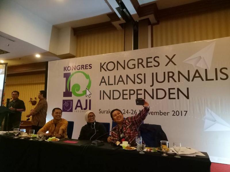 Solo - Abdul Manan dan Revolusi Riza terpilih secara aklamasi sebagai ketua umum dan sekretaris jenderal Aliansi Jurnalis Independen (AJI) dalam Kongres X di Hotel Sunan, Solo, 27 November 2017. Manan adalah redaktur Majalah Tempo, Revo merupakan kepala peliputan CNN Indonesia. Kongres ini diawali dengan konferensi bertema Jurnalisme di Era Revolusi Industri Keempat.