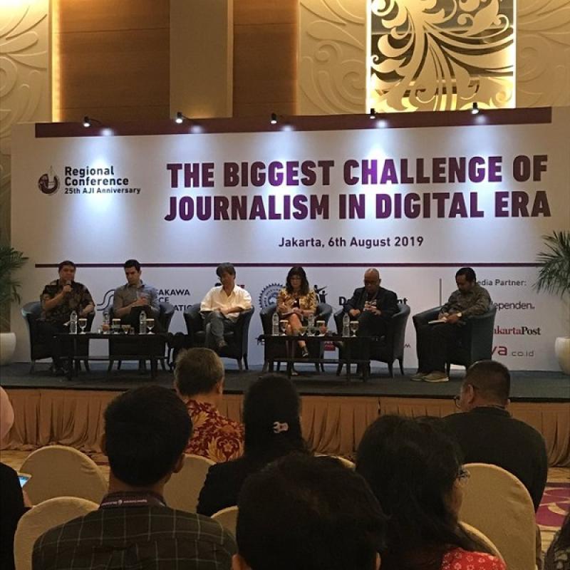 AJIINDONESIA, Jakarta - Memperingati 25 tahun kelahirannya, Aliansi Jurnalis Independen (AJI) menyelenggarakan seminar konferensi regional dan nasional dengan mengusung tema besar The Biggest Challenge of Journalism in Digital Era. Kedua seminar ini membahas tentang tantangan jurnalis maupun media serta kondisi pers dan bisnis media secara keseluruhan yang menghadapi era disrupsi digital. Kondisi yang membawa dampak yang besar terhadap media dan jurnalisme saat ini.
