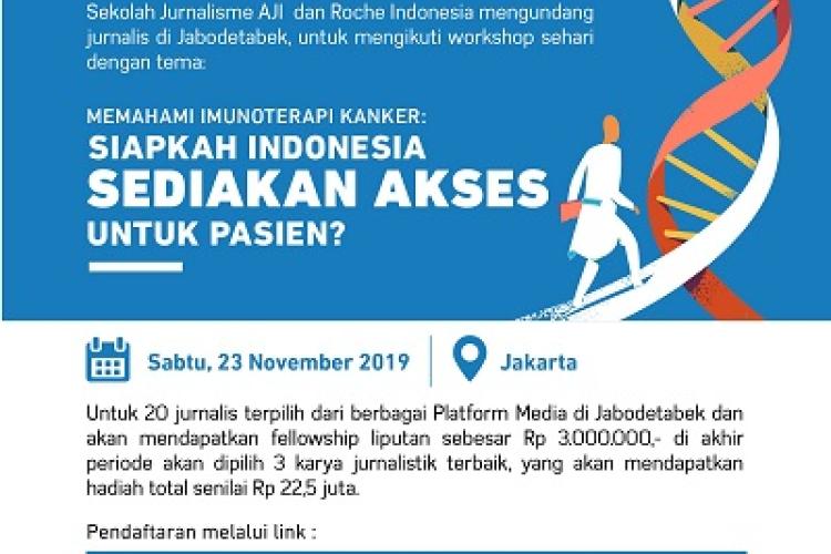 Open Recruitment Workshop Jurnalis "Memahami Imunoterapi Kanker: Siapkah Indonesia sediakan akses untuk pasien?” Sekolah Jurnalisme AJI – Roche Indonesia Sekolah Jurnalisme AJI dan Roche Indonesia