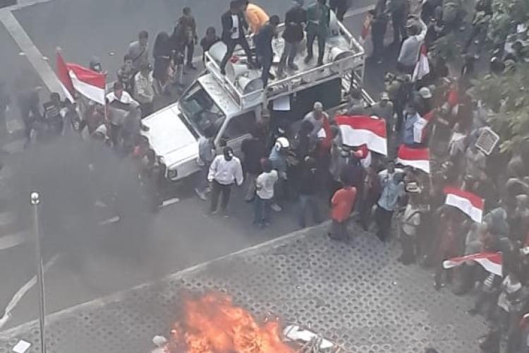 Demonstrasi rusuh di depan gedung KPK, Jakarta.