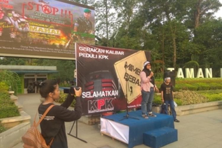 Dian Lestari dalam kegiatan gerakan solidaritas membela KPK di Pontianak, 13 September 2019. Edho Sinaga/AJI Pontianak