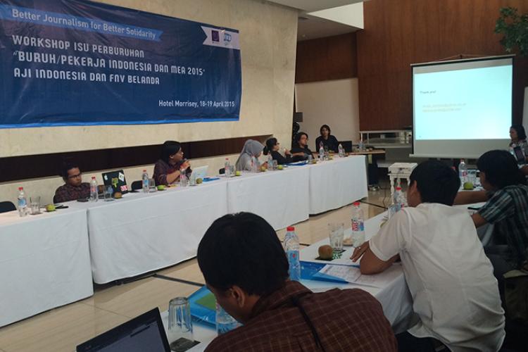JAKARTA - 20 jurnalis dari berbagai kota mengikuti Workshop Isu Perburuhan : Buruh/Pekerja Indonesia dan MEA 2015, di Jakarta 18-19 April 2015
